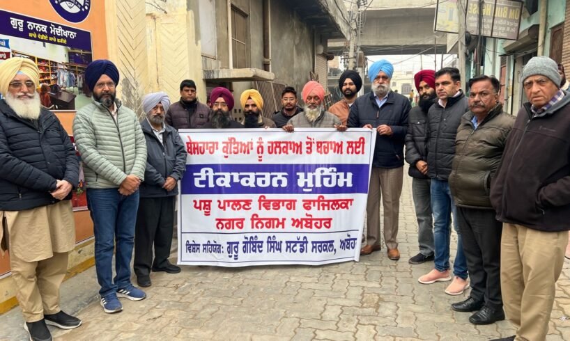 ਡਿਪਟੀ ਕਮਿਸ਼ਨਰ ਫਾਜਿਲਕਾ ਡਾ ਸੇਨੂੰ ਦੁੱਗਲ ਦੇ ਦਿਸ਼ਾ ਨਿਰਦੇਸ਼ ਹੇਠ ਡਾ ਰਾਜੀਵ ਛਾਬੜਾ ਡਿਪਟੀ ਡਾਇਰੈਕਟਰ ਪਸ਼ੂ ਪਾਲਣ ਫਾਜਿਲਕਾ ਦੀ ਅਗਵਾਈ ਵਿਚ ਪਸ਼ੂ ਪਾਲਣ ਵਿਭਾਗ ਫਾਜਿਲਕਾ ਅਤੇ ਨਗਰ ਨਿਗਮ ਅਬੋਹਰ ਵਲੋਂ ਗੁਰੂ ਗੋਬਿੰਦ ਸਿੰਘ ਸਟੱਡੀ ਸਰਕਲ ਅਬੋਹਰ ਦੇ ਸਹਿਯੋਗ ਨਾਲ ਬੇਸਹਾਰਾ ਕੁੱਤਿਆਂ ਨੂੰ ਹਲਕਾਅ ਦੇ ਬਚਾਅ ਲਈ ਟੀਕਾਕਰਨ ਮੁਹਿੰਮ ਸ਼ੁਰੂ ਕੀਤੀ ਗਈ ਹੈ।