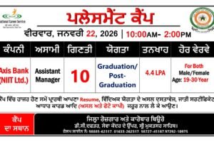 ਸ੍ਰੀ ਮੁਕਤਸਰ ਸਾਹਿਬ, 20 ਜਨਵਰੀ: ਜ਼ਿਲ੍ਹਾ ਰੋਜ਼ਗਾਰ ਅਤੇ ਕਾਰੋਬਾਰ ਬਿਊਰੋ ਵਿਖੇ 22 ਜਨਵਰੀ 2026 ਦਿਨ ਵੀਰਵਾਰ ਨੂੰ ਪਲੇਸਮੈਂਟ ਕੈਂਪ ਲਗਾਇਆ ਜਾ ਰਿਹਾ ਹੈ, ਇਹ ਜਾਣਕਾਰੀ ਜ਼ਿਲ੍ਹਾ ਰੋਜ਼ਗਾਰ ਅਫ਼ਸਰ ਸ੍ਰੀ ਦਿਲਬਾਗ ਸਿੰਘ ਨੇ ਦਿੱਤੀ। ਉਨ੍ਹਾਂ... Read more »