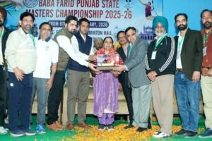 ਫ਼ਰੀਦਕੋਟ, 7 ਫਰਵਰੀ 2026 ( ) ਬਾਬਾ ਸ਼ੇਖ ਫਰੀਦ ਇੰਨਡੋਰ ਸਟੇਡੀਅਮ ਵਿਖੇ ਚੱਲ ਰਹੀ ਪੰਜਾਬ ਮਾਸਟਰਜ ਬੈਡਮਿੰਟਨ ਚੈਂਪੀਅਨਸ਼ਿਪ ਦਾ ਆਯੋਜਨ ਜਿਲ੍ਹਾ ਬੈਡਮਿੰਟਨ ਐਸੋਸੀਏਸ਼ਨ ਫਰੀਦਕੋਟ ਕਰਵਾਇਆ ਗਿਆ। ਇਸ ਟੂਰਨਾਮੈਂਟ ਵਿੱਚ 35 ਪਲੱਸ ਤੋਂ 75... Read more »