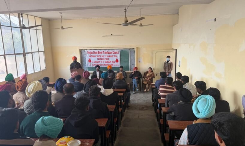ਸ੍ਰੀ ਅਨੰਦਪੁਰ ਸਾਹਿਬ 19 ਜਨਵਰੀ: ਸਥਾਨਕ ਭਾਈ ਜੈਤਾ ਜੀ ਸਿਵਲ ਹਸਪਤਾਲ ਸ੍ਰੀ ਅਨੰਦਪੁਰ ਸਾਹਿਬ ਵਿਖੇ ਪੰਜਾਬ ਸਟੇਟ ਏਡਜ ਕੰਟਰੋਲ ਸੁਸਾਇਟੀ ਚੰਡੀਗੜ੍ਹ ਦੇ ਹੁਕਮਾ ਮੁਤਾਬਿਕ 12 ਜਨਵਰੀ 2026 ਤੋਂ 31 ਜਨਵਰੀ 2026 ਤੱਕ  ਰਾਸ਼ਟਰੀ ਨੌਜਵਾਨ ਪੰਦਰਵਾੜਾ ਮਨਾਉਣ ਦੀਆਂ ਹਦਾਇਤਾਂ  ਦਿੱਤੀਆਂ ਗਈਆ ਸਨ। ਜਿਸਦੇ ਤਹਿਤ ਸਥਾਨਕ ਬਲੱਡ ਸੈਂਟਰ ਸਿਵਲ ਹਸਪਤਾਲ ਅਨੰਦਪੁਰ ਸਾਹਿਬ ਵਿਖੇ ਡਾ.ਸੁਖਵਿੰਦਰ ਸਿੰਘ ਸੀਨੀਅਰ ਮੈਡੀਕਲ ਅਫਸਰ ਦੇ ਦਿਸ਼ਾ ਨਿਰਦੇਸ਼ਾ ਅਨੁਸਾਰ ਸ਼੍ਰੀ ਗੁਰੂ ਤੇਗ ਬਹਾਦਰ ਖਾਲਸਾ ਕਾਲਜ ਸ਼੍ਰੀ ਅਨੰਦਪੁਰ ਸਾਹਿਬ  ਦੇ ਵਿਦਿਆਰਥੀਆਂ ਵੱਲੋਂ ਨੋਜਵਾਨ ਦਿਵਸ ਦੇ ਮੌਕੇ ਤੇ ਜਾਗਰੂਕਤਾ ਰੈਲੀ ਕੱਢੀ ਗਈ, ਜਿਸ ਨੂੰ ਡਾ.ਜਗਪਿੰਦਰਪਾਲ ਸਿੰਘ ਐਨ.ਐਸ ਅਫਸਰ ਨੇ ਹਰੀ ਝੰਢੀ ਦੇ ਕੇ ਰਵਾਨਾ ਕੀਤਾ।