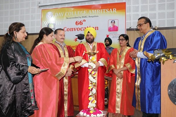 ਡੀਏਵੀ ਕਾਲਜ ਅੰਮ੍ਰਿਤਸਰ ਵਿਖੇ 6 ਅਪ੍ਰੈਲ 2025 ਨੂੰ 66ਵੀਂ ਸਲਾਨਾ ਕਨਵੋਕੇਸ਼ਨ ਆਯੋਜਿਤ ਕੀਤੀ ਗਈ ,ਜਿਸ ਵਿੱਚ ਪੰਜਾਬ ਸਰਕਾਰ ਦੇ ਬਿਜਲੀ ਅਤੇ ਊਰਜਾ ਵਿਭਾਗ ਦੇ ਮੰਤਰੀ ਸ.ਹਰਭਜਨ ਸਿੰਘ ਈਟੀਓ ਮੁੱਖ ਮਹਿਮਾਨ ਵਜੋਂ ਹਾਜ਼ਰ ਹੋਏ ਅਤੇ ਡਾ. ਪੂਜਾ ਵਿਆਸ ਡਾਇਰੈਕਟਰ ( ਏ ਐਂਡ ਐਫ਼) ਇੰਡੀਅਨ ਕੌਂਸਲ ਆਫ ਫਿਲੋਸੋਫੀਕਲ ਰਿਸਰਚ ਨਵੀਂ ਦਿੱਲੀ ਸ਼ਾਮਿਲ ਹੋਏ ।