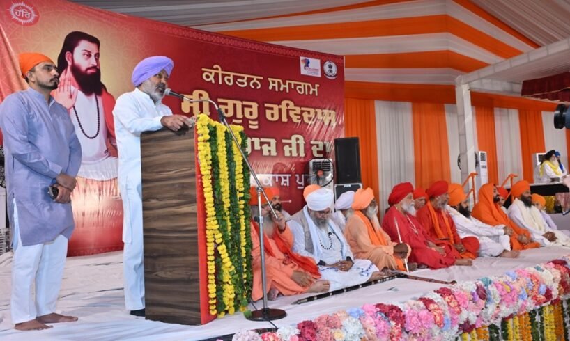 ਚੰਡੀਗੜ੍ਹ/ਰੂਪਨਗਰ, 27 ਅਪ੍ਰੈਲ– ਮੁੱਖ ਮੰਤਰੀ ਭਗਵੰਤ ਸਿੰਘ ਮਾਨ ਦੀ ਯੋਗ ਅਗਵਾਈ ਹੇਠ, ਪੰਜਾਬ ਸਰਕਾਰ ਵੱਲੋਂ ਐਤਵਾਰ ਸ਼ਾਮ ਨੂੰ ਨਹਿਰੂ ਸਟੇਡੀਅਮ, ਰੂਪਨਗਰ ਵਿਖੇ ਕਰਵਾਏ ਗਏ ਪਹਿਲੇ ਵਿਸ਼ਾਲ ਅਧਿਆਤਮਕ ਕੀਰਤਨ ਦਰਬਾਰ ਦੇ ਨਾਲ ਹੀ ਸ੍ਰੀ ਗੁਰੂ ਰਵਿਦਾਸ ਮਹਾਰਾਜ ਜੀ ਦੇ 650ਵੇਂ ਪ੍ਰਕਾਸ਼ ਪੁਰਬ ਦੇ ਰਾਜ ਪੱਧਰੀ ਸਮਾਗਮਾਂ ਦੀ ਸ਼ੁਰੂਆਤ ਕੀਤੀ ਗਈ। ਇਸ ਵਿਸ਼ਾਲ ਸਮਾਗਮ ਨਾਲ ਗੁਰੂ ਰਵਿਦਾਸ ਜੀ ਦੇ ਸਰਬ-ਸਾਂਝੇ ਸੰਦੇਸ਼ ਨੂੰ ਪੰਜਾਬ ਅਤੇ ਇਸ ਤੋਂ ਬਾਹਰ ਫੈਲਾਉਣ ਦੇ ਉਦੇਸ਼ ਨਾਲ ਸਾਲ ਭਰ ਚੱਲਣ ਵਾਲੇ ਪ੍ਰੋਗਰਾਮਾਂ ਦੀ ਲੜੀ ਦਾ ਆਗਾਜ਼ ਹੋਇਆ।