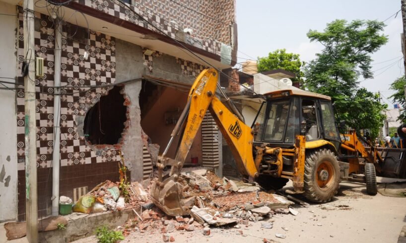 ਜਲੰਧਰ, 24 ਜੁਲਾਈ : ਪੰਜਾਬ ਸਰਕਾਰ ਵੱਲੋਂ ਨਸ਼ਿਆਂ ਖਿਲਾਫ਼ ਵਿੱਢੀ ‘ਯੁੱਧ ਨਸ਼ਿਆਂ ਵਿਰੁੱਧ’ ਮੁਹਿੰਮ ਤਹਿਤ ਨਗਰ ਨਿਗਮ ਜਲੰਧਰ ਵੱਲੋਂ ਕਮਿਸ਼ਨਰੇਟ ਪੁਲਿਸ ਜਲੰਧਰ ਦੇ ਸਹਿਯੋਗ ਨਾਲ ਵੀਰਵਾਰ ਨੂੰ ਨਿਊ ਹਰਦਿਆਲ ਨਗਰ ਵਿੱਚ ਇੱਕ ਬਦਨਾਮ ਨਸ਼ਾ ਤਸਕਰ ਦੀ ਇੱਕ ਗੈਰ-ਕਾਨੂੰਨੀ ਉਸਾਰੀ ਢਾਹ ਦਿੱਤੀ ਗਈ।