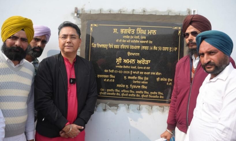 ਸੁਨਾਮ, 4 ਫਰਵਰੀ (000) : ਕੈਬਨਿਟ ਮੰਤਰੀ ਸ਼੍ਰੀ ਅਮਨ ਅਰੋੜਾ ਨੇ ਪਿੰਡ ਦਿਆਲਗੜ੍ਹ ਵਿਖੇ 14.50 ਲੱਖ ਰੁਪਏ ਦੀ ਲਾਗਤ ਨਾਲ ਤਿਆਰ ਕੀਤੀ ਗਈ ਸ਼੍ਰੀ ਗੁਰੂ ਰਵਿਦਾਸ ਜੀ ਧਰਮਸ਼ਾਲਾ ਅਤੇ 7 ਲੱਖ ਰੁਪਏ ਦੀ ਲਾਗਤ ਨਾਲ ਤਿਆਰ ਕੀਤੀ ਗਈ ਮੁਸਲਿਮ ਧਰਮਸ਼ਾਲਾ ਦਾ ਉਦਘਾਟਨ ਕੀਤਾ। ਇਸ ਮੌਕੇ ਉਨ੍ਹਾਂ ਪਿੰਡ ਵਾਸੀਆਂ ਨੂੰ ਮੁਬਾਰਕਬਾਦ ਦਿੰਦਿਆਂ ਕਿਹਾ ਕਿ ਇਹ ਸਥਾਨ ਪਿੰਡ ਦੇ ਸਮਾਜਿਕ, ਧਾਰਮਿਕ ਅਤੇ ਪਰਿਵਾਰਿਕ ਸਮਾਗਮਾਂ ਨੂੰ ਕਰਵਾਉਣ ਲਈ ਸਾਂਝੇ ਸਥਾਨ ਵਜੋਂ ਵਰਤੇ ਜਾ ਸਕਣਗੇ।
