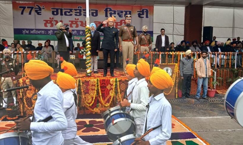 ਤਰਨ ਤਾਰਨ, 26 ਜਨਵਰੀ ( ) – ਦੇਸ਼ ਦਾ 77ਵਾਂ ਗਣਤੰਤਰ ਦਿਹਾੜਾ ਅੱਜ ਪੁਲਿਸ ਸਟੇਡੀਅਮ ਤਰਨ ਤਾਰਨ ਵਿਖੇ ਪੂਰੇ ਉਤਸ਼ਾਹ ਨਾਲ ਮਨਾਇਆ ਗਿਆ। ਇਸ ਜ਼ਿਲ੍ਹਾ ਪੱਧਰੀ ਗਣਤੰਤਰ ਦਿਵਸ ਸਮਾਗਮ ਦੌਰਾਨ ਡਿਪਟੀ ਕਮਿਸ਼ਨਰ ਤਰਨ ਤਾਰਨ ਸ੍ਰੀ ਰਾਹੁਲ, ਆਈ.ਏ.ਐੱਸ. ਵੱਲੋਂ ਕੌਮੀ ਝੰਡਾ ਲਹਿਰਾਉਣ ਦੀ ਰਸਮ ਅਦਾ ਕੀਤੀ।