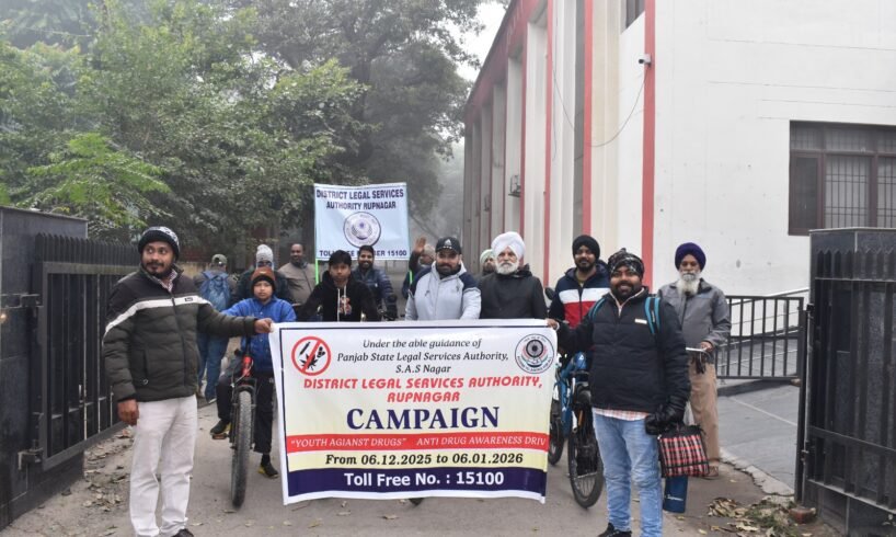 ਰੂਪਨਗਰ, 29 ਦਸੰਬਰ: ਮੈਂਬਰ ਸਕੱਤਰ ਪੰਜਾਬ ਰਾਜ ਕਾਨੂੰਨੀ ਸੇਵਾਵਾਂ ਅਥਾਰਟੀ, ਐਸ.ਏ.ਐਸ ਨਗਰ ਅਤੇ ਜ਼ਿਲ੍ਹਾ ਅਤੇ ਸੈਸ਼ਨ ਜੱਜ ਸ਼੍ਰੀਮਤੀ ਮਨਜੋਤ ਕੌਰ ਦੇ ਨਿਰਦੇਸ਼ਾਂ ਹੇਠ ਜ਼ਿਲ੍ਹਾ ਕਾਨੂੰਨੀ ਸੇਵਾਵਾਂ ਅਥਾਰਟੀ ਵੱਲੋਂ ਅੱਜ ਨਸ਼ਿਆਂ ਖਿਲਾਫ਼ ਚੱਲ ਰਹੀ ਮੁਹਿੰਮ ਤਹਿਤ ਅੱਜ ਜ਼ਿਲ੍ਹਾ ਕਚਹਿਰੀਆਂ ਤੋਂ ਲੈ ਕੇ ਹੈੱਡ ਵਰਕਸ ਤੱਕ ਸਾਈਕਲ ਅਤੇ ਮੋਟਰਸਾਈਕਲ ਰੈਲੀ ਕੱਢੀ ਗਈ।