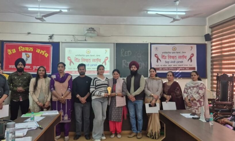ਰੂਪਨਗਰ, 27 ਨਵੰਬਰ: ਸਰਕਾਰੀ ਕਾਲਜ ਰੋਪੜ ਵਿੱਚ ਸਹਾਇਕ ਡਾਇਰੈਕਟਰ ਯੁਵਕ ਸੇਵਾਵਾਂ ਰੂਪਨਗਰ ਦੇ ਦਿਸ਼ਾ ਨਿਰਦੇਸ਼ਾਂ ਹੇਠ ਪ੍ਰਿੰਸੀਪਲ ਸ. ਜਤਿੰਦਰ ਸਿੰਘ ਗਿੱਲ ਦੇ ਸਹਿਯੋਗ ਨਾਲ ਅਤੇ ਕਾਲਜ ਦੇ ਰੈਡ ਰਿਬਨ ਕਲੱਬ ਦੇ ਕਨਵੀਨਰ ਡਾ. ਅਨੂ ਸ਼ਰਮਾ ਦੀ ਅਗਵਾਈ ਵਿੱਚ ਐਚ ਆਈ ਵੀ/ਏਡਜ਼ ਜਾਗਰੂਕਤਾ ਮੁਹਿੰਮ ਤਹਿਤ ਜ਼ਿਲ੍ਹਾ ਪੱਧਰੀ ਰੈਡ ਰਿਬਨ ਕਲੱਬਾਂ ਦੇ ਮੁਕਾਬਲੇ ਆਯੋਜਿਤ ਕਰਵਾਏ ਗਏ।