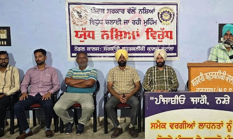 ਬਟਾਲਾ, 7 ਅਗਸਤ ( ) ਅੱਜ ਸਰਕਾਰੀ ਪੌਲੀਟੈਕਨਿਕ ਕਾਲਜ ਬਟਾਲਾ ਵਿਖੇ ਪ੍ਰਿੰਸੀਪਲ ਦਵਿੰਦਰ ਸਿੰਘ ਭੱਟੀ ਦੀ ਅਗਵਾਈ ਵਿੱਚ ’ਰੈਡ ਰਿਬਨ ਕਲੱਬ’ ਅਤੇ ਐਨ.ਐਸ.ਐਸ ਯੂਨਿਟ ਵੱਲੋਂ ਪੰਜਾਬ ਸਰਕਾਰ ਵੱਲੋਂ ਨਸ਼ਿਆਂ ਵਿਰੁੱਧ ਚਲਾਈ ਜਾ ਰਹੀ ਮੁਹਿੰਮ ’ਯੁੱਧ ਨਸ਼ਿਆਂ ਵਿਰੁੱਧ’ ਦੇ ਤਹਿਤ ਨਸ਼ਾ ਵਿਰੋਧੀ ਜਾਗਰੂਕਤਾ ਸੈਮੀਨਾਰ ਕਰਵਾਇਆ ਗਿਆ।