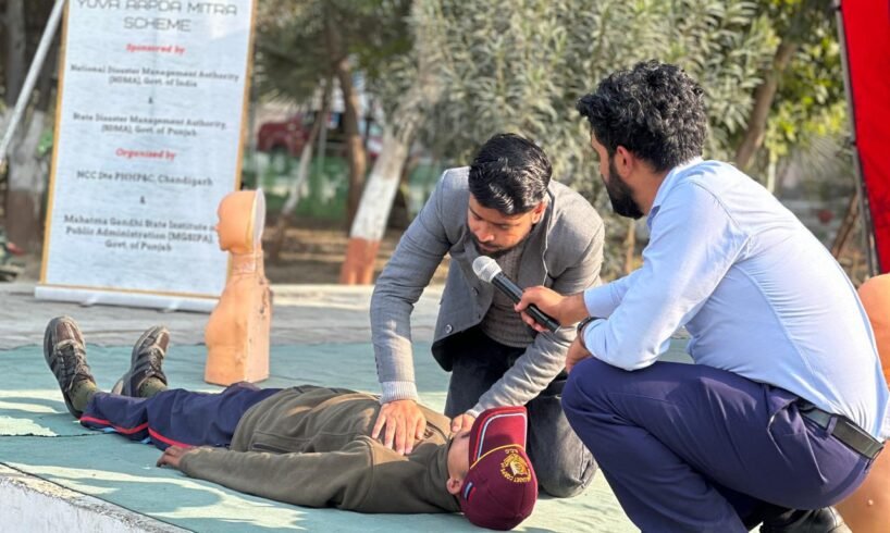 ਜਿਸ ਵਿੱਚ ਸੂਬੇਦਾਰ ਮੇਜਰ ਲੈਫਟੀਨੈਂਟ  ਸੁਖਦੇਵ ਸਿੰਘ , ਕੈਪਟਨ ਤਨਵੀਰ ਸਿੰਘ , ਕੈਪਟਨ ਕੇ. ਜੇ. ਐਸ. ਗਿੱਲ ਐਨ.ਸੀ.ਸੀ ਸਟਾਫ਼ ਟੀਮ ਸ਼ਾਮਿਲ ਰਹੀ। ਮਹਾਤਮਾ ਗਾਂਧੀ ਸਟੇਟ ਇੰਸਟੀਟਿਊਟ ਆਫ਼ ਪਬਲਿਕ ਐਡਮਿਨਿਸਟਰੇਸ਼ਨ ਵੱਲੋਂ ਕੋਰਸ ਕੋਆਡੀਨੇਟਰ ਅੰਕੁਰ ਸ਼ਰਮਾ ਦੀ ਦੇਖ ਰੇਖ ਹੇਠ ਡਿਜਾਸਟਰ ਮੈਨੇਜਮੈਂਟ ਯੁਵਾ ਆਪਦਾ ਮਿੱਤਰ ਕੈਂਪ ਆਯੋਜਿਤ ਕੀਤਾ ਗਿਆ ਹੈ ਜਿਸ ਵਿੱਚ ਟ੍ਰੇਨਿੰਗ ਦੇ ਚੌਥੇ ਦਿਨ ਵਲੰਟੀਅਰਾਂ ਨੂੰ ਕੋਰਸ ਕੋਆਰਡੀਨੇਟਰ ਅੰਕੁਰ ਸ਼ਰਮਾ ਵੱਲੋਂ ਸੀ.ਪੀ.ਆਰ ਦੀ ਟ੍ਰੇਨਿੰਗ ਦਿੱਤੀ ਗਈ।