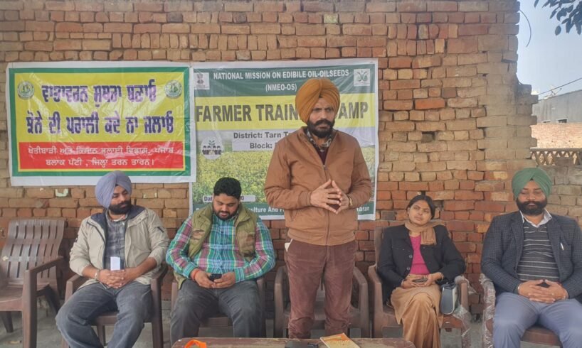 ਪੱਟੀ/ਤਰਨ ਤਾਰਨ, 23 ਜਨਵਰੀ ( ) – ਡਿਪਟੀ ਕਮਿਸ਼ਨਰ ਤਰਨ ਤਰਨ ਸ੍ਰੀ ਰਾਹੁਲ ਆਈ.ਏ.ਐੱਸ. ਅਤੇ ਮੁੱਖ ਖੇਤੀਬਾੜੀ ਅਫ਼ਸਰ ਤਰਨ ਤਰਨ ਡਾ. ਤੇਜਬੀਰ ਸਿੰਘ ਦੇ ਦਿਸ਼ਾ ਨਿਰਦੇਸ਼ ਹੇਠ ਨੈਸ਼ਨਲ ਮਿਸ਼ਨ ਆਫ ਐਡੀਬਲ ਆਇਲ ਸਕੀਮ ਅਧੀਨ ਪੱਟੀ ਅਤੇ ਪਿੰਡ ਘਰਿਆਲਾ ਵਿਖੇ ਦੋ ਰੋਜ਼ਾ ਕਿਸਾਨ ਸਿਖਲਾਈ ਕੈਂਪ ਦਾ ਆਯੋਜਨ ਕੀਤਾ ਗਿਆ।