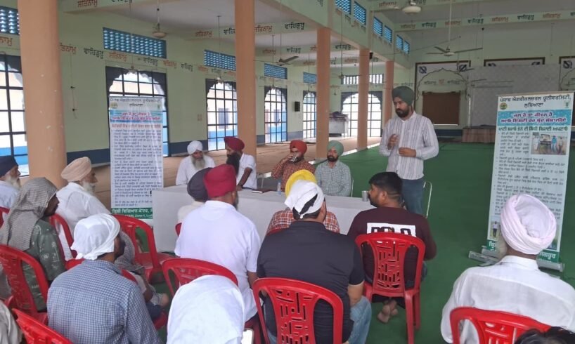 ਭਵਾਨੀਗੜ੍ਹ/ਸੰਗਰੂਰ, 28 ਅਗਸਤ (000) – ਪੰਜਾਬ ਖੇਤੀਬਾੜੀ ਯੂਨੀਵਰਸਿਟੀ ਦੇ ਕ੍ਰਿਸ਼ੀ ਵਿਗਿਆਨ ਕੇਂਦਰ, ਸੰਗਰੂਰ ਵੱਲੋਂ ਫੂਡ ਐਂਡ ਐਗਰੀਕਲਚਰ ਐਸੋਸੀਏਸ਼ਨ (ਐਫ ਏ ਓ) ਨਾਲ ਮਿਲ ਕੇ ਜੀਈਐਫ 7 ਪ੍ਰੋਜੈਕਟ ਅਧੀਨ ਚੁਣੇ ਹੋਏ ਬਲਾਕ ਭਵਾਨੀਗੜ੍ਹ ਦੇ ਪਿੰਡ ਕਾਕੜਾ ਵਿਖੇ ਝੋਨੇ ਦੀ ਸਿੱਧੀ ਬਿਜਾਈ ਸਬੰਧੀ ਵਿਚਾਰ- ਗੋਸ਼ਟੀ ਦਾ ਆਯੋਜਨ ਕੀਤਾ ਗਿਆ| ਜਿਸ ਵਿੱਚ 30 ਕਿਸਾਨਾਂ ਨੇ ਭਾਗ ਲਿਆ।