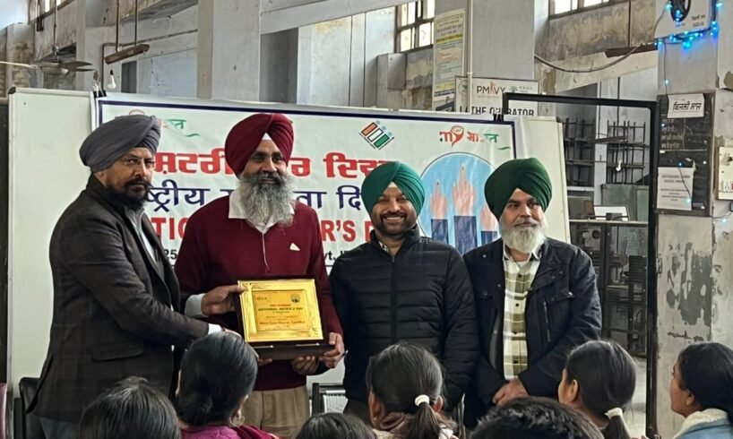 ਸ:ਗੁਰਜੰਟ ਸਿੰਘ ਨੇ ਨੈਸ਼ਨਲ ਵੋਟਰ ਦਿਵਸ ਸਬੰਧੀ ਸਾਰਿਆ ਨੂੰ ਸਹੁੰ ਚੁਕਾਈ । ਸ: ਬੇਅੰਤ ਸਿੰਘ ਕਾਨੂੰਗੋ ਨੇ ਵੋਟਾਂ ਨਾਲ ਸੰਬੰਧਿਤ ਜਾਣਕਾਰੀ ਦਿੱਤੀ ਅਤੇ 18 ਸਾਲ ਦੇ ਬੱਚਿਆਂ ਨੂੰ ਵੋਟ ਬਣਾਉਣ ਅਤੇ ਲੋਕਾਂ ਨੂੰ ਚੋਣਾਂ ਸਬੰਧੀ ਜਾਗਰੂਕਤਾ ਫੈਲਾਉਣ ਲਈ ਅਪੀਲ ਕੀਤੀ। ਇਸ ਮੌਕੇ ਮੁੱਖ ਮਹਿਮਾਨ ਅਤੇ ਮਹਿਮਾਨਾਂ ਨੂੰ ਸਨਮਾਨ ਚਿੰਨ ਦੇ ਕੇ ਸਨਮਾਨਿਤ ਕੀਤਾ ਗਿਆ।