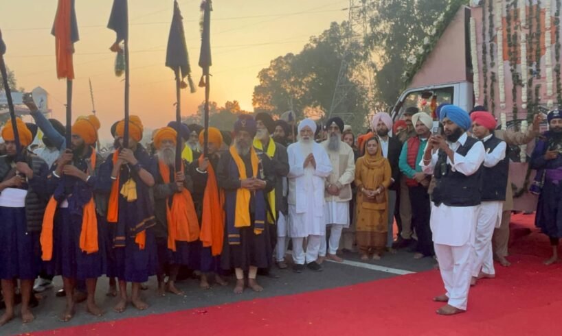 ਨੌਵੇਂ ਪਾਤਸ਼ਾਹ ਸਾਹਿਬ ਸ੍ਰੀ ਗੁਰੂ ਤੇਗ਼ ਬਹਾਦਰ ਜੀ ਦੇ 350ਵੇਂ ਸ਼ਹੀਦੀ ਦਿਹਾੜੇ ਸਬੰਧੀ ਸ੍ਰੀਨਗਰ ਤੋਂ 19 ਨਵੰਬਰ ਨੂੰ ਅਰੰਭ ਹੋਏ ਨਗਰ ਕੀਰਤਨ ਦਾ ਅੱਜ ਪੰਜਾਬ ਵਿੱਚ ਦਾਖ਼ਲ ਹੋਣ ‘ਤੇ ਮਾਧੋਪੁਰ ਹੈੱਡ ਵਿਖੇ ਕੈਬਨਿਟ ਮੰਤਰੀ ਲਾਲ ਚੰਦ ਕਟਾਰੂਚੱਕ, ਜ਼ਿਲ੍ਹਾ ਪ੍ਰਸ਼ਾਸਨ ਪਠਾਨਕੋਟ ਅਤੇ ਸੰਗਤ ਵੱਲੋਂ ਫੁੱਲਾਂ ਦੀ ਵਰਖਾ ਕਰਕੇ ਭਰਵਾਂ ਸਵਾਗਤ ਕੀਤਾ ਗਿਆ।