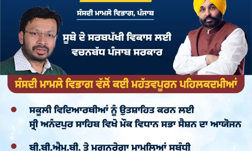 ਸਾਲ 2025 ਦਾ ਸੰਸਦੀ ਮਾਮਲੇ ਵਿਭਾਗ ਦਾ ਲੇਖਾ-ਜੋਖਾ; ਪੰਜਾਬ ਸਰਕਾਰ ਨੇ ਸਕੂਲੀ ਵਿਦਿਆਰਥੀਆਂ ਨੂੰ ਉਤਸ਼ਾਹਿਤ ਕਰਨ ਲਈ ਸ੍ਰੀ ਅਨੰਦਪੁਰ ਸਾਹਿਬ ਵਿਖੇ ਮੌਕ ਵਿਧਾਨ ਸਭਾ ਸੈਸ਼ਨ ਕਰਵਾਇਆ
