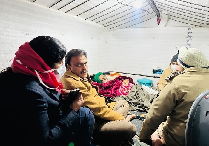 ਕਿਸਾਨ ਆਗੂ ਜਗਜੀਤ ਸਿੰਘ ਡੱਲੇਵਾਲ ਦੀ ਵਿਗੜਦੀ ਸਿਹਤ ਤੋਂ ਚਿੰਤਤ ਮੁੱਖ ਮੰਤਰੀ ਭਗਵੰਤ ਸਿੰਘ ਮਾਨ ਦੀ ਅਗਵਾਈ ਹੇਠਲੀ ਪੰਜਾਬ ਸਰਕਾਰ ਦੇ ਦਿਸ਼ਾਂ ਨਿਰਦੇਸ਼ਾਂ ‘ਤੇ ਜ਼ਿਲ੍ਹਾ ਪ੍ਰਸ਼ਾਸਨ ਨੇ ਅੱਜ ਖਨੌਰੀ ਬਾਰਡਰ, ਢਾਬੀ ਗੁੱਜਰਾਂ ਵਿਖੇ ਕਿਸਾਨ ਆਗੂ ਨਾਲ ਮੁਲਾਕਾਤ ਕੀਤੀ।ਇਸ ਟੀਮ ਵਿੱਚ ਐਸ.ਐਸ.ਪੀ. ਪਟਿਆਲਾ ਡਾ. ਨਾਨਕ ਸਿੰਘ, ਵਧੀਕ ਡਿਪਟੀ ਕਮਿਸ਼ਨਰ (ਜ) ਇਸ਼ਾ ਸਿੰਗਲ, ਐਸ.ਡੀ.ਐਮ ਪਾਤੜਾਂ ਅਸ਼ੋਕ ਕੁਮਾਰ ਵੀ ਸ਼ਾਮਲ ਸਨ।