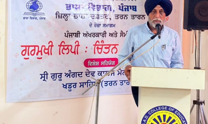 ਗੁਰੂ ਨਾਨਕ ਦੇਵ ਯੂਨੀਵਰਸਿਟੀ, ਅੰਮ੍ਰਿਤਸਰ ਦੇ ਪੰਜਾਬੀ ਅਧਿਐਨ ਸਕੂਲ ਦੇ ਮੁਖੀ ਡਾ. ਮਨਜਿੰਦਰ ਸਿੰਘ ਨੇ ਆਪਣੇ ਵਿਚਾਰ ਸਾਂਝੇ ਕਰਦਿਆਂ ਕਿਹਾ ਕਿ ਖਡੂਰ ਸਾਹਿਬ ਦੀ ਧਰਤੀ ਉਹ ਪਵਿੱਤਰ ਅਸਥਾਨ ਹੈ, ਜਿੱਥੇ ਗੁਰੂ ਸਾਹਿਬ ਬਾਲ-ਬੋਧ ਪੜ੍ਹਾਉਂਦੇ ਸਨ। ਉਨ੍ਹਾਂ ਦੱਸਿਆ ਕਿ ਗੁਰਮੁਖੀ ਲਿਪੀ ‘ਫੋਨੈਮਿਕ’ (ਇਕ ਧੁਨੀ, ਇਕ ਅੱਖਰ) ਦੇ ਸਿਧਾਂਤ ‘ਤੇ ਅਧਾਰਤ ਹੈ, ਜਿਸ ਕਾਰਨ ਇਹ ਦੁਨੀਆ ਦੀਆਂ ਹੋਰਨਾਂ ਲਿਪੀਆਂ ਨਾਲੋਂ ਵੱਖਰੀ ਤੇ ਪੂਰਨ ਹੈ। ਉਨ੍ਹਾਂ ਗੁਰਬਾਣੀ ਦੇ ਅਧਿਆਤਮਕ ਪ੍ਰਵਚਨ, ਗੁਰੂ ਸਾਹਿਬਾਨ ਦੀ ਭਾਸ਼ਾ-ਸ਼ੈਲੀ ਅਤੇ ਭਾਈ ਗੁਰਦਾਸ ਜੀ ਦੀ ਰਚਨਾ ਵਿੱਚ ਲਿਪੀ ਦੇ ਮਹੱਤਵ ਬਾਰੇ ਵੀ ਵਿਸਥਾਰ ਵਿੱਚ ਦੱਸਿਆ। ਇਸ ਤੋਂ ਇਲਾਵਾ ਉਹਨਾਂ ਨੇ ਸ਼ਬਦ-ਜੋੜਾਂ ਦੀਆਂ ਸਮੱਸਿਆਵਾਂ, ਅੱਖਰਾਂ ਦੇ ਉਚਾਰਨ, ਮੁਹਾਰਨੀ ਅਤੇ ਉਨ੍ਹਾਂ ਦੇ ਅਕਾਰ (ਬਣਤਰ) ਬਾਰੇ ਅਹਿਮ ਨੁਕਤੇ ਸਾਂਝੇ ਕੀਤੇ। ਅਧਿਆਪਨ ਦੇ ਖੇਤਰ ਵਿੱਚ ਲਿਪੀ ਦੀ ਸਹੀ ਵਰਤੋਂ ਅਤੇ ਅੱਖਰਾਂ ਦੀ ਸਥਿਤੀ ਦਾ ਧਿਆਨ ਰੱਖਣ ਦੀ ਸਲਾਹ ਦਿੱਤੀ ਗਈ।