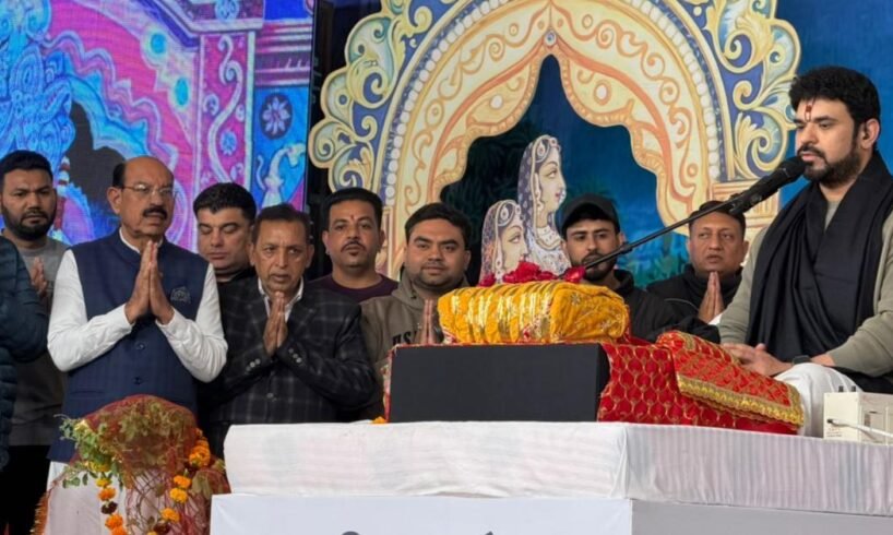 ਜਲੰਧਰ : ਸ਼੍ਰੀ ਬਾਂਕੇ ਬਿਹਾਰੀ ਭਾਗਵਤ ਪ੍ਰਚਾਰ ਸਮਿਤੀ ਵੱਲੋਂ ਕਰਵਾਈ ਜਾ ਰਹੀ ਸ਼੍ਰੀਮਦ ਭਾਗਵਤ ਕਥਾ ਦੇ ਆਖਰੀ ਦਿਨ ਕੈਬਨਿਟ ਮੰਤਰੀ ਮੋਹਿੰਦਰ ਭਗਤ ਅਤੇ ਮੇਅਰ ਵਿਨੀਤ ਧੀਰ ਨੇ ਵਿਸ਼ੇਸ਼ ਤੌਰ ’ਤੇ ਸ਼ਿਰਕਤ ਕਰਦਿਆਂ ਕਥਾ ਸਰਵਣ ਕੀਤੀ। ਪਰਮ ਸ਼੍ਰਧੇਯ ਆਚਾਰੀਆ ਸ਼੍ਰੀ ਗੌਰਵ ਕ੍ਰਿਸ਼ਨ ਗੋਸਵਾਮੀ ਜੀ ਮਹਾਰਾਜ ਨੇ ਸੁਦਾਮਾ ਚਰਿਤਰ ਦਾ ਦਿਵਯ ਵਰਣਨ ਕਰਦਿਆਂ ਜੀਵਨ ਵਿੱਚ ਮਨ ਦੀ ਸ਼ਾਂਤੀ ਨੂੰ ਸਭ ਤੋਂ ਮਹੱਤਵਪੂਰਣ ਦੱਸਿਆ।