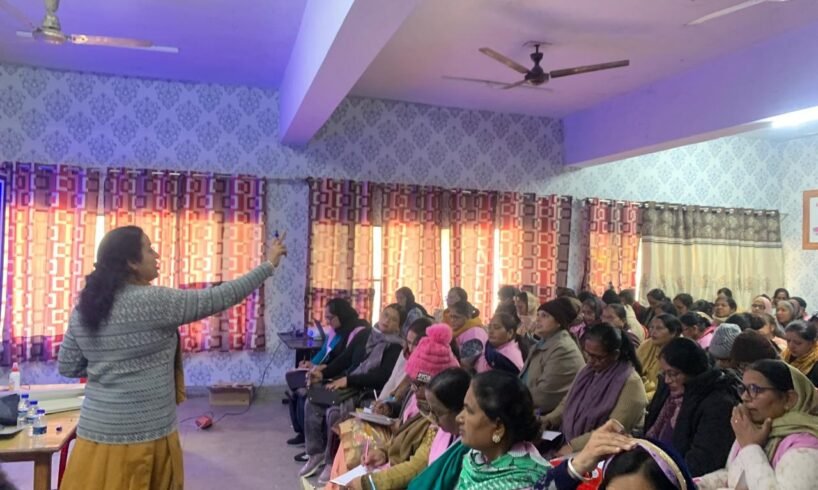 ਪ੍ਰਥਮ ਟੀਮ ਵੱਲੋਂ ‘ਪੋਸ਼ਣ ਵੀ, ਪੜ੍ਹਾਈ ਵੀ’ ਮੁਹਿੰਮ ਤਹਿਤ ਆਂਗਨਵਾੜੀ ਵਰਕਰਾਂ ਦੀ ਟ੍ਰੇਨਿੰਗ ਕਰਵਾਈ ਗਈ। ਸਮਾਜਿਕ ਸੁਰੱਖਿਆ ਅਤੇ ਇਸਤਰੀ ਤੇ ਬਾਲ ਵਿਕਾਸ ਵਿਭਾਗ ਵੱਲੋਂ ਬੱਚਿਆਂ ਦੇ ਪੋਸ਼ਣ ਅਤੇ ਸ਼ੁਰੂਆਤੀ ਬਚਪਨ ਦੀ ਸਿਖਿਆ ਤੇ ਧਿਆਨ ਕੇਂਦਰਤ ਕਰਨ ਦੇ ਉਦੇਸ਼ ਨਾਲ ਪ੍ਰਸਿੱਧ ਸਿੱਖਿਆ ਸੰਸਥਾ ਪ੍ਰਥਮ ਦੀ ਟੀਮ ਵੱਲੋਂ ਮਿਡਲ ਲੈਵਲ ਟ੍ਰੇਨਿੰਗ ਸੈਂਟਰ, ਰਾਮ ਕਲੋਨੀ ਕੈਂਪ, ਹੁਸ਼ਿਆਰਪੁਰ ਵਿਖੇ 930 ਆਂਗਨਵਾੜੀ ਵਰਕਰਾਂ ਲਈ “ਪੋਸ਼ਣ ਵੀ, ਪੜ੍ਹਾਈ ਵੀ” ਥੀਮ ਹੇਠ ਇਕ ਵਿਸ਼ੇਸ਼ ਟ੍ਰੇਨਿੰਗ ਪ੍ਰੋਗਰਾਮ ਆਯੋਜਿਤ ਕੀਤਾ ਗਿਆ। ਇਸ ਟ੍ਰੇਨਿੰਗ ਦੌਰਾਨ ਜ਼ਿਲ੍ਹਾ ਪ੍ਰੋਗਰਾਮ ਅਫਸਰ ਗਗਨਦੀਪ ਸਿੰਘ ਨੇ 3 ਤੋਂ 6 ਸਾਲ ਦੀ ਉਮਰ ਦੇ ਬੱਚਿਆਂ ਲਈ ਪੋਸ਼ਣ ਅਤੇ ਸ਼ੁਰੂਆਤੀ ਸਿੱਖਿਆ ਨੂੰ ਪ੍ਰਭਾਵਸ਼ਾਲੀ ਬਣਾਉਣਾ ਬਾਰੇ ਦੱਸਿਆ ਅਤੇ ਪ੍ਰਥਮ ਟੀਮ ਵੱਲੋਂ ਆਂਗਨਵਾੜੀ ਵਰਕਰਾਂ ਨੂੰ ਬੱਚਿਆਂ ਦੀ ਪੋਸ਼ਣ ਸਥਿਤੀ, ਵਿਕਾਸ ਦੀ ਨਿਗਰਾਨੀ, ਖੇਡ-ਆਧਾਰਿਤ ਅਤੇ ਗਤੀਵਿਧੀ-ਆਧਾਰਿਤ ਸਿੱਖਣ, ਕਹਾਣੀ ਸੁਣਾਉਣ, ਗੀਤਾਂ ਅਤੇ ਸਥਾਨਕ ਸਿੱਖਣ ਸਮੱਗਰੀ ਦੀ ਵਰਤੋਂ ਬਾਰੇ ਵਿਸਥਾਰ ਨਾਲ ਜਾਣਕਾਰੀ ਦਿੱਤੀ ਗਈ। ਟ੍ਰੇਨਿੰਗ ਦੌਰਾਨ ਮਾਪਿਆਂ ਦੀ ਭਾਗੀਦਾਰੀ, ਘਰੇਲੂ ਗਤੀਵਿਧੀਆਂ ਅਤੇ ਬੱਚਿਆਂ ਵਿੱਚ ਸਿੱਖਣ ਦੀ ਦਿਲਚਸਪੀ ਪੈਦਾ ਕਰਨ ਉੱਤੇ ਵੀ ਜ਼ੋਰ ਦਿੱਤਾ ਗਿਆ। ਪ੍ਰਥਮ ਟੀਮ ਦੇ ਮੈਂਬਰਾਂ ਨੇ ਆਂਗਨਵਾੜੀ ਵਰਕਰਾਂ ਨੂੰ ਪ੍ਰੈਕਟਿਕਲ ਉਦਾਹਰਨਾਂ ਅਤੇ ਡੈਮੋਨਸਟ੍ਰੇਸ਼ਨ ਰਾਹੀਂ ਸਿਖਲਾਈ ਦਿੱਤੀ। ਜ਼ਿਲ੍ਹਾ ਪ੍ਰੋਗਰਾਮ ਅਫਸਰ ਗਗਨਦੀਪ ਸਿੰਘ ਨੇ ਇਸ ਮੌਕੇ ਕਿਹਾ ਕਿ ਇਹ ਟ੍ਰੇਨਿੰਗ ਲੈਣ ਨਾਲ ਆਂਗਨਵਾੜੀ ਵਰਕਰਾਂ ਦੀ ਸਮਰੱਥਾ ਵਧਾਉਣ ਦੇ ਨਾਲ- ਨਾਲ ਬੱਚਿਆਂ ਦੀ ਸਿਹਤ ਅਤੇ ਸਿੱਖਿਆ ਦੋਵਾਂ ਵਿੱਚ ਵੀ ਸੁਧਾਰ ਆਵੇਗਾ। ਉਨ੍ਹਾਂ ਨੇ ਪ੍ਰਥਮ ਟੀਮ ਦੇ ਯਤਨਾਂ ਦੀ ਸ਼ਲਾਘਾ ਕੀਤੀ। ਟ੍ਰੇਨਿੰਗ ਦੇ ਅੰਤ ਵਿੱਚ ਭਾਗੀਦਾਰਾਂ ਨਾਲ ਵਿਚਾਰ-ਵਟਾਂਦਰਾ ਕੀਤਾ ਗਿਆ ਅਤੇ ਆਂਗਨਵਾੜੀ ਵਰਕਰਾਂ ਨੇ ਟ੍ਰੇਨਿੰਗ ਨੂੰ ਲਾਭਕਾਰੀ ਦੱਸਦਿਆਂ ਆਪਣੇ-ਆਪਣੇ ਕੇਂਦਰਾਂ ਵਿੱਚ ਸਿੱਖੀਆਂ ਗਈਆਂ ਗਤੀਵਿਧੀਆਂ ਲਾਗੂ ਕਰਨ ਦਾ ਭਰੋਸਾ ਦਿੱਤਾ।