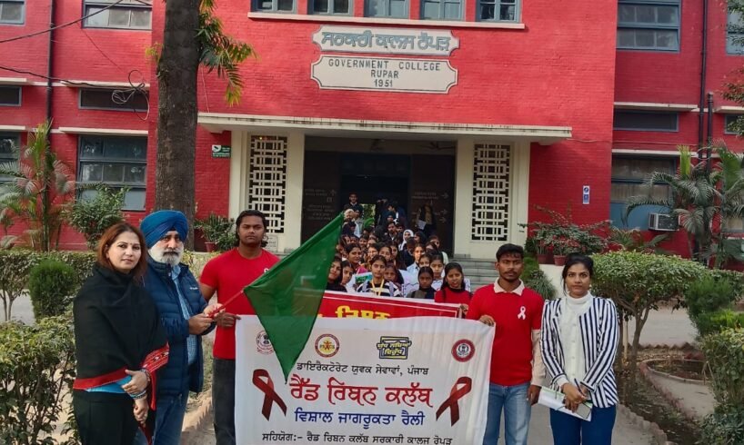 ਰੂਪਨਗਰ, 01 ਦਸੰਬਰ: ਭਾਰਤ ਸਰਕਾਰ ਦੇ ਯੁਵਾ ਮਾਮਲੇ ਅਤੇ ਖੇਡ ਮੰਤਰਾਲਾ ਦੇ ਆਦੇਸ਼ਾਂ ਤਹਿਤ ਪ੍ਰੋਗਰਾਮ ਕੋਆਰਡੀਨੇਟਰ, ਕੌਮੀ ਸੇਵਾ ਯੋਜਨਾ, ਪੰਜਾਬੀ ਯੂਨੀਵਰਸਿਟੀ ਪਟਿਆਲਾ ਅਤੇ ਡਾਇਰੈਕਟੋਰੇਟ ਯੁਵਕ ਸੇਵਾਵਾਂ, ਪੰਜਾਬ ਦੇ ਦਿਸ਼ਾ ਨਿਰਦੇਸ਼ਾਂ ਅਨੁਸਾਰ ਸਰਕਾਰੀ ਕਾਲਜ ਰੋਪੜ ਵਿਖੇ ਪ੍ਰਿੰਸੀਪਲ ਜਤਿੰਦਰ ਸਿੰਘ ਗਿੱਲ ਦੀ ਸਰਪ੍ਰਸਤੀ ਹੇਠ ਕਾਲਜ ਦੇ ਕੌਮੀ ਸੇਵਾ ਯੋਜਨਾ ਵਿਭਾਗ ਅਤੇ ਰੈੱਡ ਰਿਬਨ ਕਲੱਬ ਦੇ ਸਹਿਯੋਗ ਨਾਲ ਵਿਸ਼ਵ ਏਡਜ਼ ਦਿਵਸ ਮਨਾਇਆ ਗਿਆ।